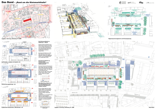Längst bietet die Kleinmarkhalle mehr als ausschließlich Einkaufsmöglickeiten. Um der Multifunktionalität und Gastronomisierung bei gleichzeitig steigendem Nutzungsdruck gerecht zu werden, entwickelt die Studentin eine Art („Markt“)Band aus ergänzendem Mobiliar und anmietbaren Räumen, welches die Freiräume miteinander verbindet. Das Band dient je nach Tageszeit und Bedarf auf unterschiedliche Weise. So sollen die Räume dauerhaft und für mehrere NutzerInnenguppen bespielbar und attraktiv gemacht werden.
