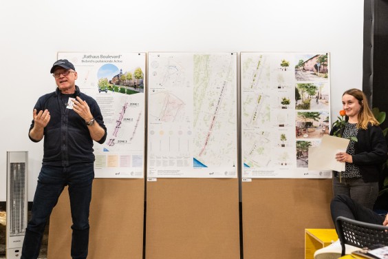 Studierende aus dem Master-Entwurf im SoSe 23 haben den Ideenwettbewerb Lebensadern Biebrich (Schwerpunkt 1: Hauptstraßen) mit einem Gesamtpreisgeld von 2250 € gewonnen! Teilgenommen haben Studierende der TU Darmstadt, der Hochschule RheinMain und der Geisenheim University. Der Wettbewerb wurde von der vom Land Hessen geförderten Initiativgruppe Ideen für Biebrich ausgelobt. Gesucht wurden Ideen und Visionen für die Gestaltung der Straßen und Plätze in Wiesbaden- Biebrich mit dem Ziel, den öffentlichen Raum klimaangepasst und inklusiv zu gestalten und zugleich als Bewegungs-, Aufenthalts- und Begegnungsräume aufzuwerten. Wir bedanken uns auch ganz herzlich bei der Initiativgruppe für die Zusammenarbeit während des gesamten Semesters, für die Organisation des Wettbewerbs, die schöne Preisverleihung und das großzügige Preisgeld.
