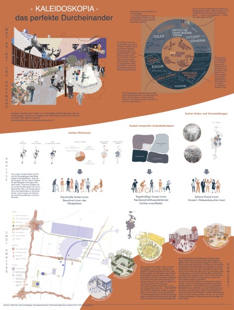 Im Rahmen des städtebaulichen Entwurfs „Hoffnung“ setzten sich die Student*Innen mit den Themen auseinander, die ihnen in Bezug auf ihre Zukunft und die Zukunft unserer Städte wichtig sind und haben darauf aufbauend auf dem Messplatz in Darmstadt ein Stück Stadt entworfen, dass ihnen Hoffnung für die Zukunft gibt.